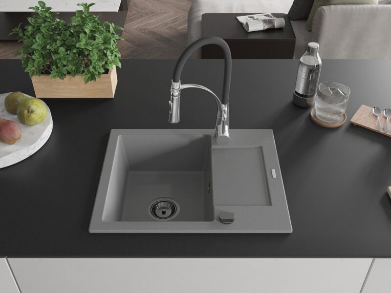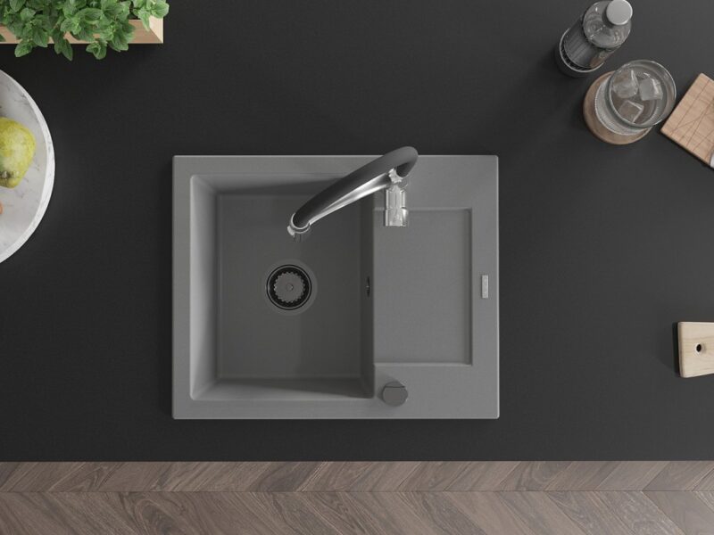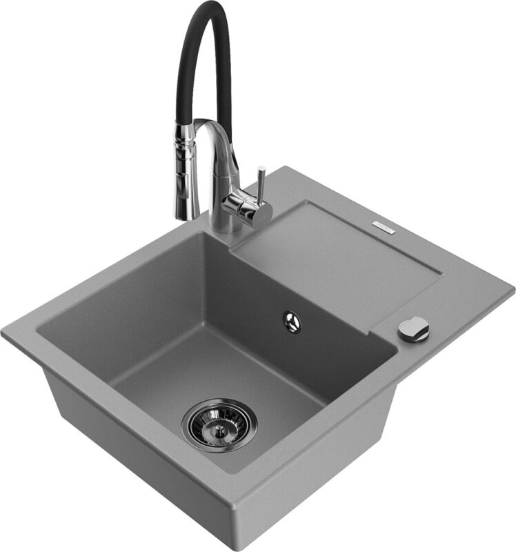 MEXEN/S MEXEN/S – Enzo granitový drez 1 s odkvapkávačom vrátane batérie Aster, šedá 6506-71-73450-07-B
