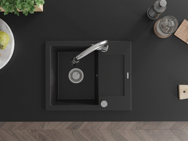MEXEN/S MEXEN/S – Enzo granitový drez 1 s odkvapkávačom vrátane batérie Elia, čierna 6506-77-670101-00