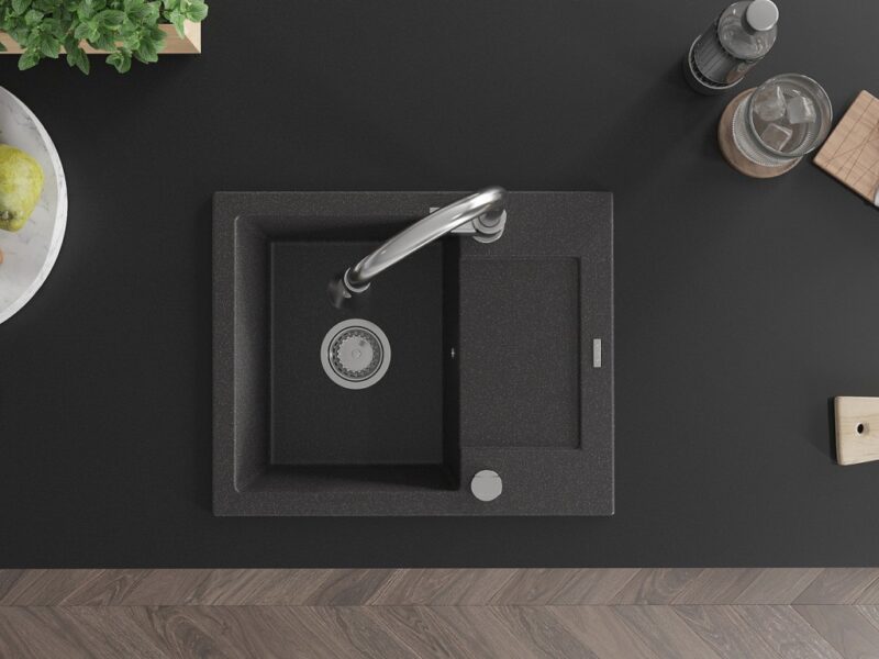 Technické dáta: drez: Rozmer: 576x465x174mm Hĺbka komory: 164 mm Rozmery komory: 395×320 mm Priemer odtoku: ø90 mm Typ: 1-miska s krátkym odkvapkávačom Typ: Zapustené do pracovnej dosky Farba: Škvrnitá čierna Povrchová úprava sifónu: Chrome Materiál: žula (80% žulové kamenivo, 20% živice) Prepadový otvor: Áno Otvory: (batérie, automatické) 2 Inštalácia: Univerzálna, je možné inštalovať s odkvapkávačom na ľavú alebo pravú stranu Vysoká odolnosť proti poškriabaniu a zmene farby Odolnosť proti tepelným šokom Ľahko čistiteľný povrch Dva dodatočné vyfrézované otvory na samodierovanie ø35 kuchynská batéria: Materiál: mosadz Farba: Chrome Hlava: Keramická Prevzdušňovač: Áno Typ: Jedna páka Výška batérie: 380 mm Rozsah výtoku: 252 mm Typ výtoku: Výsuvný(GT) Ean: 5905315028952