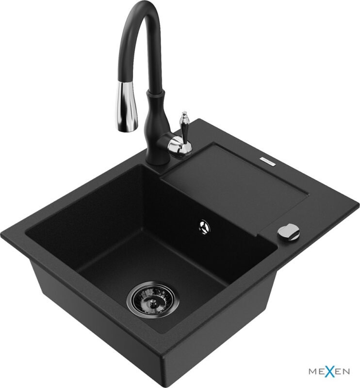 MEXEN/S MEXEN/S – Enzo granitový drez 1 s odkvapkávačom vrátane batérie Savita, čierna 6506-77-672601-70-B