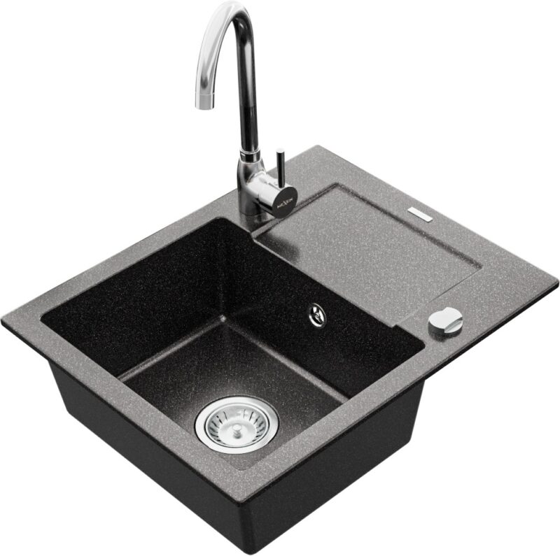 MEXEN/S MEXEN/S – Enzo granitový drez 1 s odkvapkávačom vrátane batérie Telma, čierna kropenatý 6506-76-670200-00