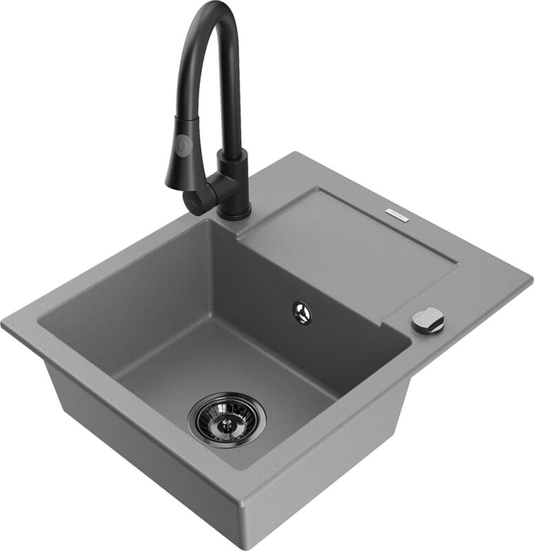 MEXEN/S MEXEN/S – Enzo granitový drez 1 s odkvapkávačom vrátane Elia, sivá 6506-71-670101-70-B