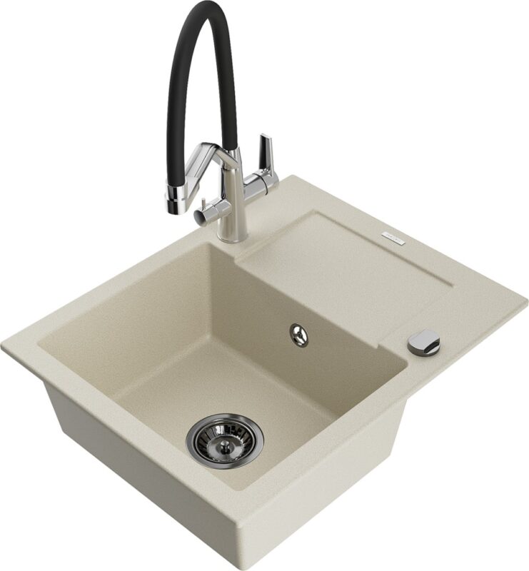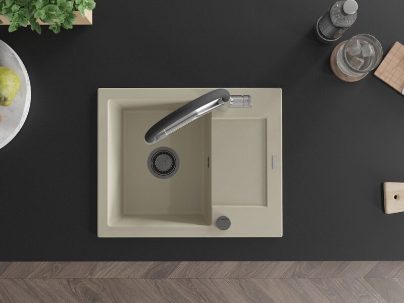 MEXEN/S MEXEN/S – Enzo granitový drez s odkvapkávačom vrátane batérie Duo, béžová 6506-69-671701-07-B