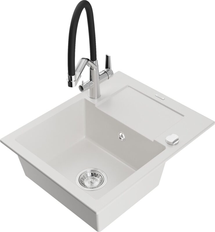 MEXEN/S MEXEN/S – Enzo granitový drez s odkvapkávačom vrátane batérie Duo, biela 6506-20-671701-07