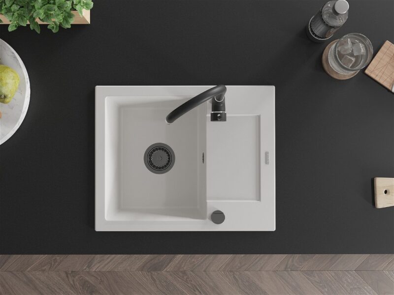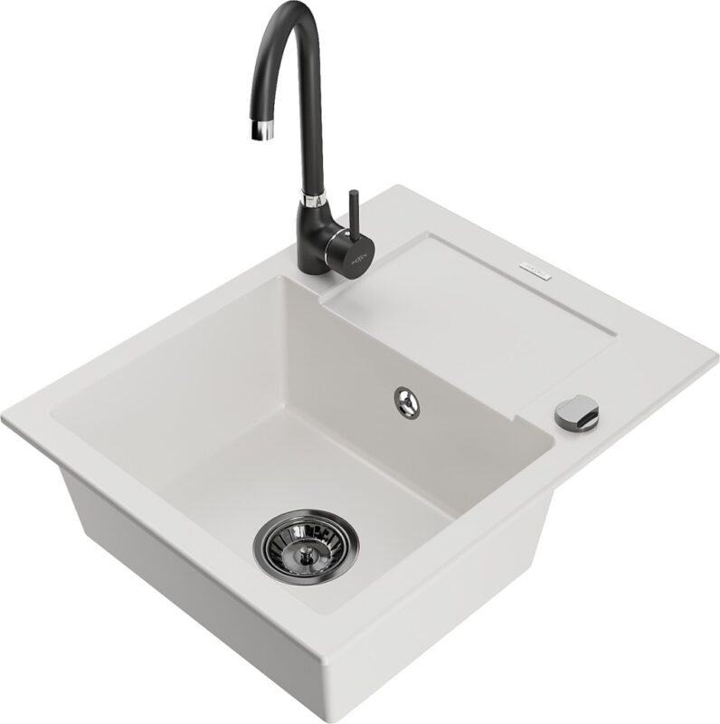 MEXEN/S MEXEN/S – Enzo granitový drez s odkvapkávačom vrátane batérie Telma, biela 6506-20-670200-70