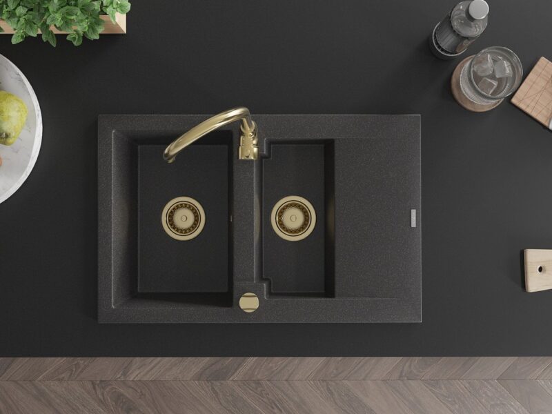 Technické dáta: Rozmer: 737x475x177mm Hĺbka komory: 167 mm (väčšia), 107 mm (menšia) Rozmery komory: 395×272 mm (väčšie), 375×182 mm (menšie) Priemer odtoku: ø90 mm Typ: 1,5-komorový s krátkym odkvapkávačom Typ: Zapustené do pracovnej dosky Materiál: žula Farba: Škvrnitá čierna Povrchová úprava sifónu: zlatá Prepadový otvor: Áno Otvor pre batériu: Áno Vrátane automatického sifónu Vysoká odolnosť proti poškriabaniu a zmene farby Odolnosť proti tepelným šokom Ľahko čistiteľný povrch(GT) Ean: 5905315011817