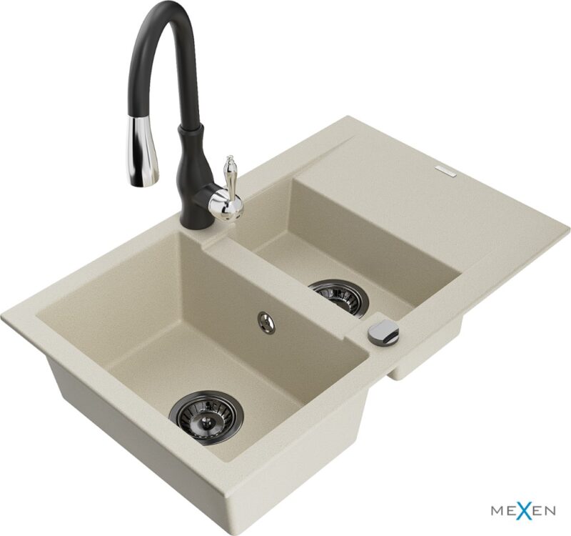 MEXEN/S MEXEN/S – Gaspar granitový drez 1.5 s odkvapkávačom vrátane batérie Savita, béžová 6507-69-672601-70