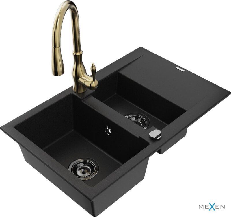 MEXEN/S MEXEN/S – Gaspar granitový drez 1.5 s odkvapkávačom vrátane batérie Savita, čierna 6507-77-672601-50-B