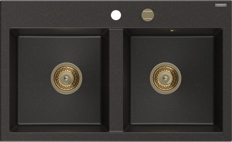 MEXEN/S MEXEN/S – Hektor granitový drez 2-bowl 800 x 480 mm, čierna/zlatá metalík, zlatý sifón 6521802000-75-G