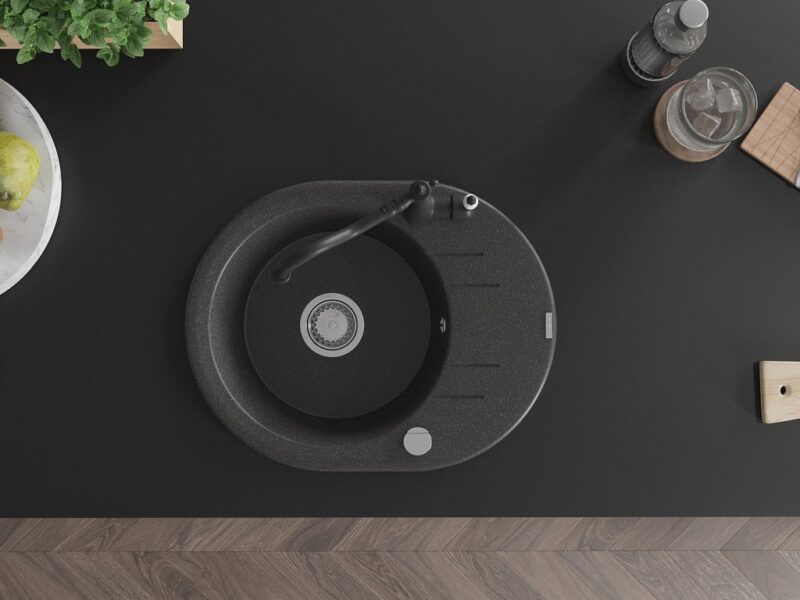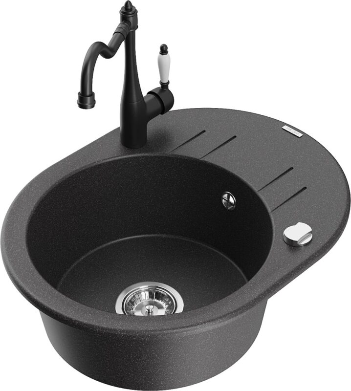 Technické dáta: drez: Rozmer: 586 x 458 x 190 mm Hĺbka komory: 180 mm Šírka komory: 378×374 mm Priemer odtoku: ø90 mm Typ: 1-miska s krátkym odkvapkávačom Typ: Zapustené do pracovnej dosky Farba: Škvrnitá čierna Povrchová úprava sifónu: Chrome Materiál: žula (80% žulové kamenivo, 20% živice) Prepadový otvor: Áno Otvory: (batérie, automatické) 2 Inštalácia: Univerzálna, je možné inštalovať s odkvapkávačom na ľavú alebo pravú stranu Vysoká odolnosť proti poškriabaniu a zmene farby Odolnosť proti tepelným šokom Ľahko čistiteľný povrch Dva dodatočné vyfrézované otvory na samodierovanie ø35 kuchynská batéria: Materiál: mosadz Čierna farba Hlava: Keramická Prevzdušňovač: Áno Typ: Jedna páka Výška batérie: 290 mm Rozsah výtoku: 260 mm(GT) Ean: 5905315042118