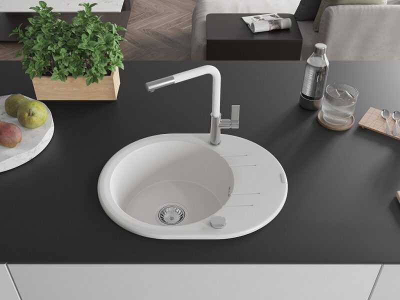 MEXEN/S MEXEN/S – Kevin granitový drez 1-miska s odkvapkávačom vrátane batérie Flora, biela 6517-20-670401-02