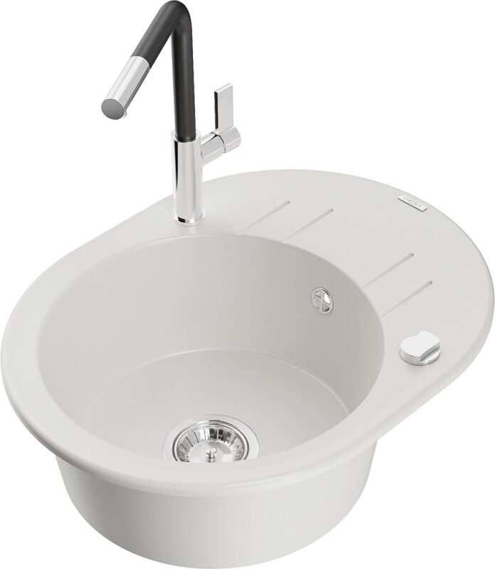 MEXEN/S MEXEN/S – Kevin granitový drez 1-miska s odkvapkávačom vrátane batérie Flora, biela 6517-20-670401-07