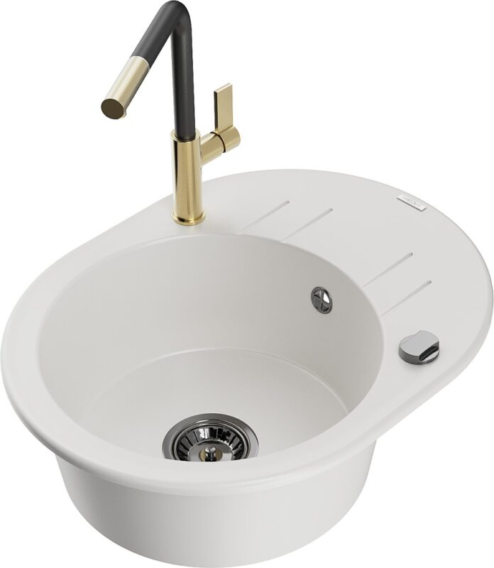 MEXEN/S MEXEN/S – Kevin granitový drez 1-miska s odkvapkávačom vrátane batérie Flora, biela 6517-20-670401-57-B