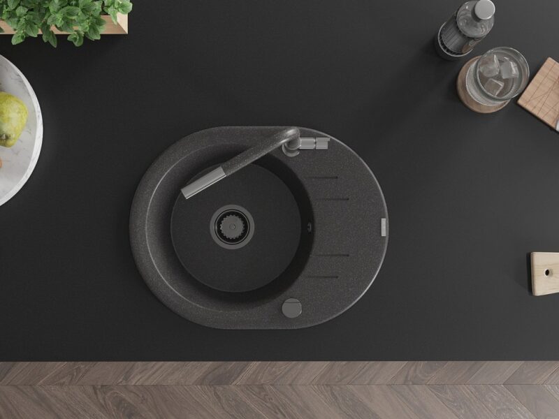 Technické dáta: drez: Rozmer: 586 x 458 x 190 mm Hĺbka komory: 180 mm Šírka komory: 378×374 mm Priemer odtoku: ø90 mm Typ: 1-miska s krátkym odkvapkávačom Typ: Zapustené do pracovnej dosky Farba: Škvrnitá čierna Povrchová úprava sifónu: čierna Materiál: žula (80% žulové kamenivo, 20% živice) Prepadový otvor: Áno Otvory: (batérie, automatické) 2 Inštalácia: Univerzálna, je možné inštalovať s odkvapkávačom na ľavú alebo pravú stranu Vysoká odolnosť proti poškriabaniu a zmene farby Odolnosť proti tepelným šokom Ľahko čistiteľný povrch Dva dodatočné vyfrézované otvory na samodierovanie ø35 kuchynská batéria: Materiál: mosadz Farba: chróm/čierna škvrnitá Hlava: Keramická Prevzdušňovač: Áno Typ: Jedna páka Rozsah výtoku: 245 mm Výška batérie: 307 mm(GT) Ean: 5905315063335