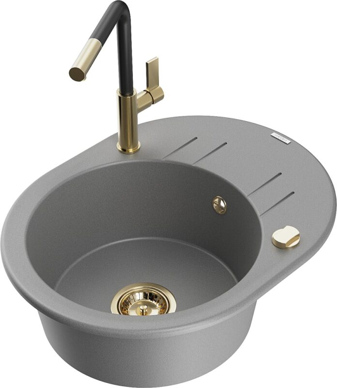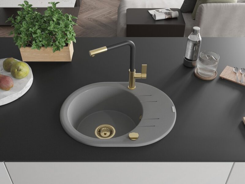 Technické dáta: drez: Rozmer: 586 x 458 x 190 mm Hĺbka komory: 180 mm Šírka komory: 378×374 mm Priemer odtoku: ø90 mm Typ: 1-miska s krátkym odkvapkávačom Typ: Zapustené do pracovnej dosky Šedá farba Povrchová úprava sifónu: zlatá Materiál: žula (80% žulové kamenivo, 20% živice) Prepadový otvor: Áno Otvory: (batérie, automatické) 2 Inštalácia: Univerzálna, je možné inštalovať s odkvapkávačom na ľavú alebo pravú stranu Vysoká odolnosť proti poškriabaniu a zmene farby Odolnosť proti tepelným šokom Ľahko čistiteľný povrch Dva dodatočné vyfrézované otvory na samodierovanie ø35 kuchynská batéria: Materiál: mosadz Farba: Zlatá/Čierna Hlava: Keramická Prevzdušňovač: Áno Typ: Jedna páka Rozsah výtoku: 245 mm Výška batérie: 307 mm(GT) Ean: 5905315063144