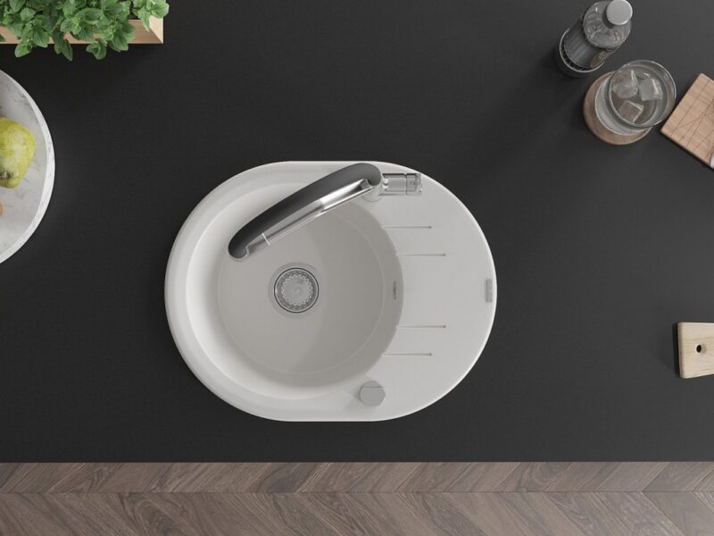 Technické dáta: Drez: Rozmer: 586x458x190 mm Hĺbka komory: 180 mm Šírka komory: 378×374 mm Priemer odtoku: ø90 mm Typ: 1-miska s krátkym odkvapkávačom Typ: Zapustené do pracovnej dosky biela farba Povrchová úprava sifónu: Chrome Materiál: žula (80% žulové kamenivo 20% živice) Prepadový otvor: Áno Otvory: (batérie, automat) 2 Inštalácia: Univerzálna, je možné inštalovať s odkvapkávačom na ľavú alebo pravú stranu Vysoká odolnosť proti poškriabaniu a zmene farby Odolnosť proti tepelným šokom Povrch pre ľahké čistenie Dva dodatočné vyfrézované otvory na samodierovanie ø35 Kuchynská batéria: Materiál: mosadz Farba: chróm/čierna Hlavy: Keramické Perlátor: Áno Typ výtoku: Flexibilný s mosadznou podperou Rozsah výtoku: 260 mm Výška: 405 mm Typ: Dve rukoväte Dvojhlavá batéria s prídavným filtrom na pitnú vodu(GT) Ean: 5905315055125