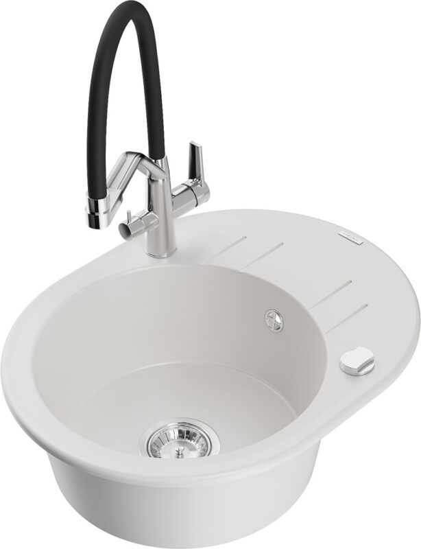 MEXEN/S MEXEN/S – Kevin granitový drez 1-miska vrátane batérie Duo, biela 6517-20-671701-07