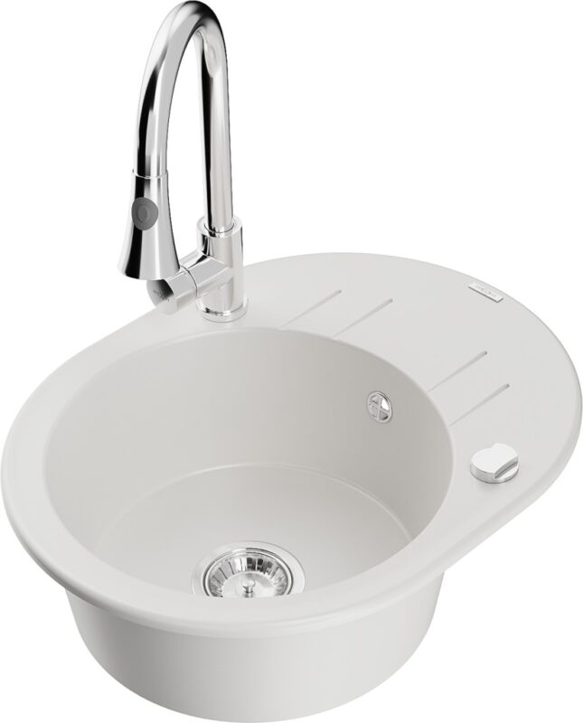 MEXEN/S MEXEN/S – Kevin granitový drez 1 s odkvapkávačom vrátane batérie Elia, biela 6517-20-670101-00