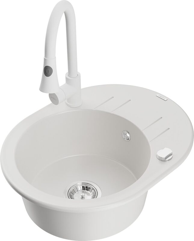 MEXEN/S MEXEN/S – Kevin granitový drez 1 s odkvapkávačom vrátane batérie Elia, biela 6517-20-670101-20