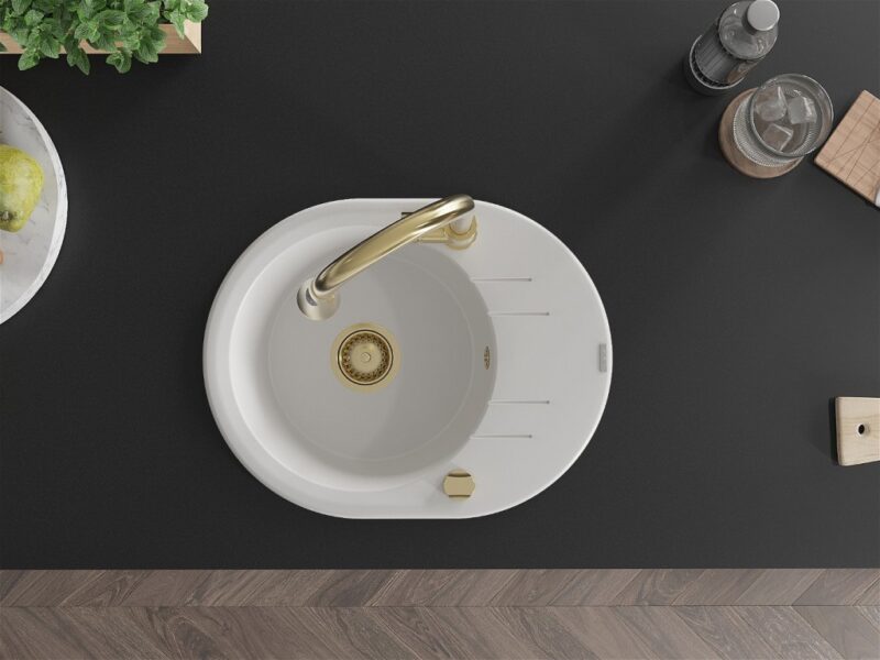 MEXEN/S MEXEN/S – Kevin granitový drez 1 s odkvapkávačom vrátane batérie Elia, biela 6517-20-670101-50