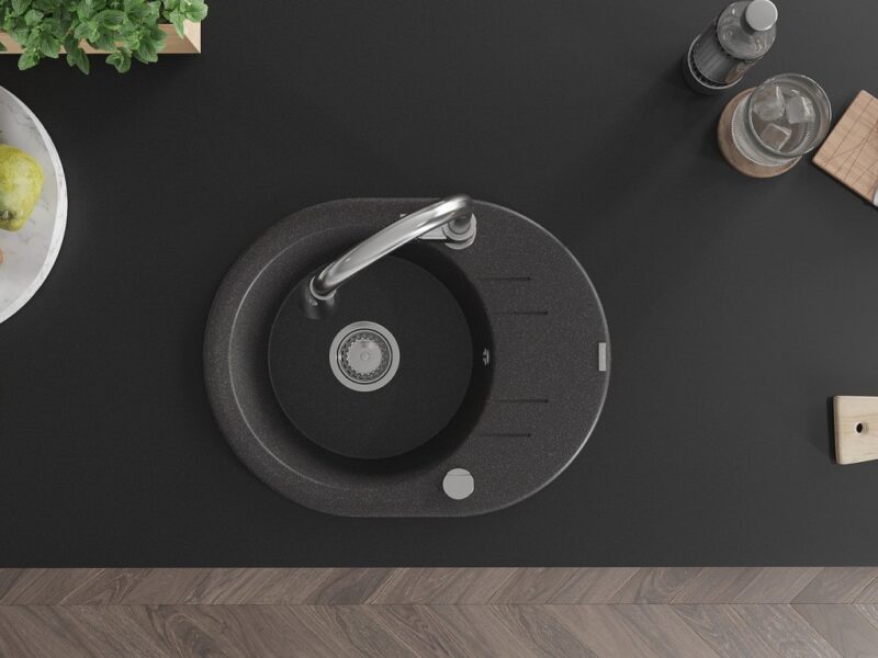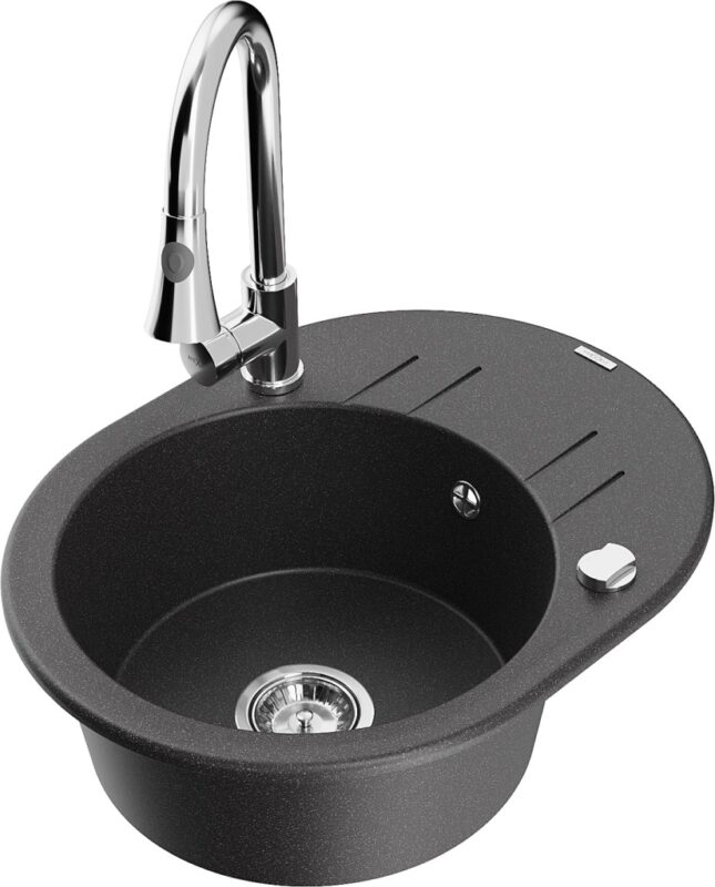 Technické dáta: drez: Rozmer: 586 x 458 x 190 mm Hĺbka komory: 180 mm Šírka komory: 378×374 mm Priemer odtoku: ø90 mm Typ: 1-miska s krátkym odkvapkávačom Typ: Zapustené do pracovnej dosky Farba: Škvrnitá čierna Povrchová úprava sifónu: Chrome Materiál: žula (80% žulové kamenivo, 20% živice) Prepadový otvor: Áno Otvory: (batérie, automatické) 2 Inštalácia: Univerzálna, je možné inštalovať s odkvapkávačom na ľavú alebo pravú stranu Vysoká odolnosť proti poškriabaniu a zmene farby Odolnosť proti tepelným šokom Ľahko čistiteľný povrch Dva dodatočné vyfrézované otvory na samodierovanie ø35 kuchynská batéria: Materiál: mosadz Farba: Chrome Hlava: Keramická Prevzdušňovač: Áno Typ: Jedna páka Výška batérie: 380 mm Rozsah výtoku: 252 mm Typ výtoku: Výsuvný(GT) Ean: 5905315031839