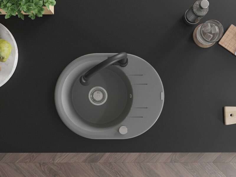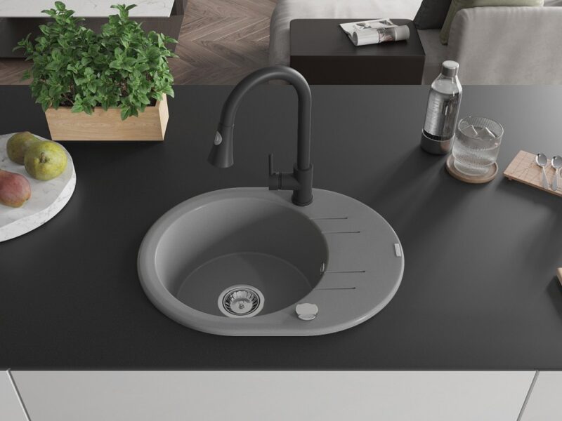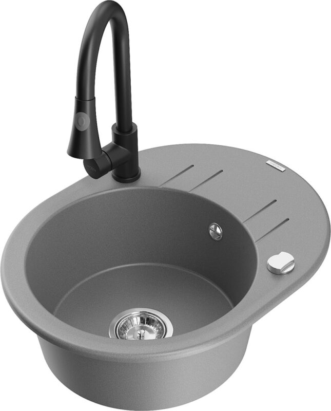 Technické dáta: drez: Rozmer: 586 x 458 x 190 mm Hĺbka komory: 180 mm Šírka komory: 378×374 mm Priemer odtoku: ø90 mm Typ: 1-miska s krátkym odkvapkávačom Typ: Zapustené do pracovnej dosky Šedá farba Povrchová úprava sifónu: Chrome Materiál: žula (80% žulové kamenivo, 20% živice) Prepadový otvor: Áno Otvory: (batérie, automatické) 2 Inštalácia: Univerzálna, je možné inštalovať s odkvapkávačom na ľavú alebo pravú stranu Vysoká odolnosť proti poškriabaniu a zmene farby Odolnosť proti tepelným šokom Ľahko čistiteľný povrch Dva dodatočné vyfrézované otvory na samodierovanie ø35 kuchynská batéria: Materiál: mosadz Čierna farba Hlava: Keramická Prevzdušňovač: Áno Typ: Jedna páka Výška batérie: 380 mm Rozsah výtoku: 252 mm Typ výtoku: Výsuvný(GT) Ean: 5905315031716