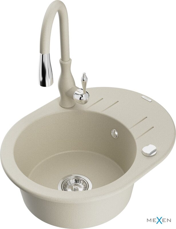 MEXEN/S MEXEN/S – Kevin granitový drez 1 s odkvapkávačom vrátane batérie Savita, béžová 6517-69-672601-69