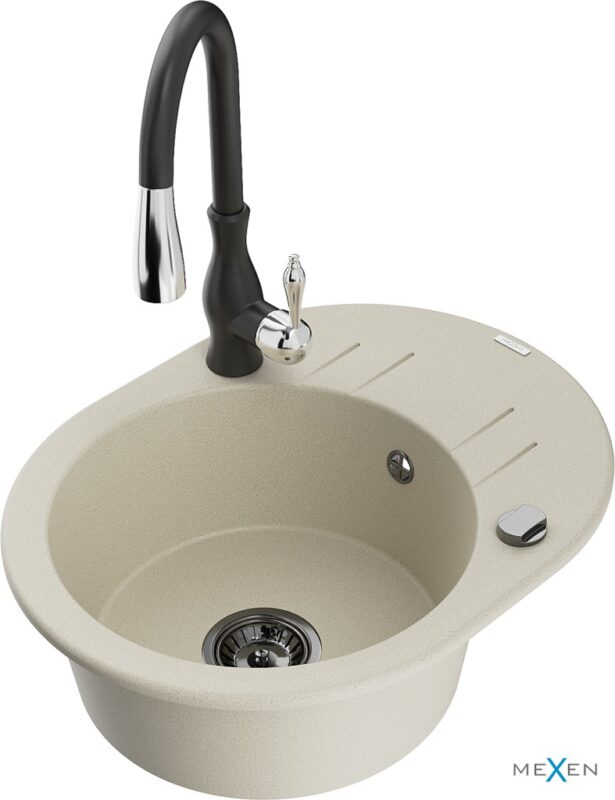 MEXEN/S MEXEN/S – Kevin granitový drez 1 s odkvapkávačom vrátane batérie Savita, béžová 6517-69-672601-70
