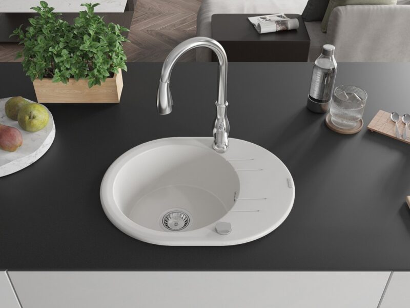 Technické dáta: drez: Rozmer: 586 x 458 x 190 mm Hĺbka komory: 180 mm Rozmery komory: 378×374 mm Priemer odtoku: ø90 mm Typ: 1-miska s krátkym odkvapkávačom Typ: Zapustené do pracovnej dosky biela farba Povrchová úprava sifónu: Chrome Materiál: žula (80% žulové kamenivo, 20% živice) Prepadový otvor: Áno Otvory: (batérie, automatické) 2 Inštalácia: Univerzálna, je možné inštalovať s odkvapkávačom na ľavú alebo pravú stranu Vysoká odolnosť proti poškriabaniu a zmene farby Odolnosť proti tepelným šokom Ľahko čistiteľný povrch Dva dodatočné vyfrézované otvory na samodierovanie ø35 kuchynská batéria: Materiál: mosadz Čierna farba Hlava: Keramická Prevzdušňovač: Áno Typ: Jedna páka Výška batérie: 410 mm Rozsah výtoku: 231 mm(GT) Ean: 5905315036728