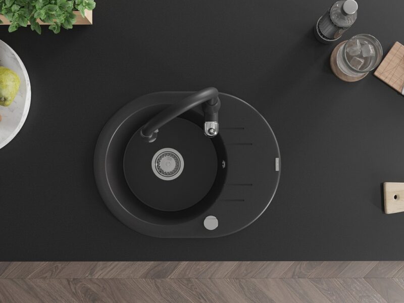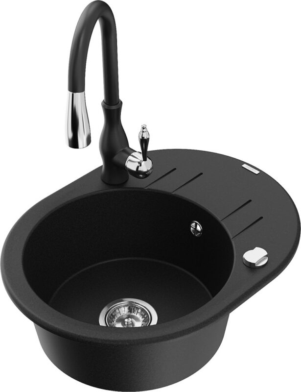 Technické dáta: drez: Rozmer: 586 x 458 x 190 mm Hĺbka komory: 180 mm Rozmery komory: 378×374 mm Priemer odtoku: ø90 mm Typ: 1-miska s krátkym odkvapkávačom Typ: Zapustené do pracovnej dosky Čierna farba Povrchová úprava sifónu: Chrome Materiál: žula (80% žulové kamenivo, 20% živice) Prepadový otvor: Áno Otvory: (batérie, automatické) 2 Inštalácia: Univerzálna, je možné inštalovať s odkvapkávačom na ľavú alebo pravú stranu Vysoká odolnosť proti poškriabaniu a zmene farby Odolnosť proti tepelným šokom Ľahko čistiteľný povrch Dva dodatočné vyfrézované otvory na samodierovanie ø35 kuchynská batéria: Materiál: mosadz Čierna farba Hlava: Keramická Prevzdušňovač: Áno Typ: Jedna páka Výška batérie: 410 mm Rozsah výtoku: 231 mm(GT) Ean: 5905315037022