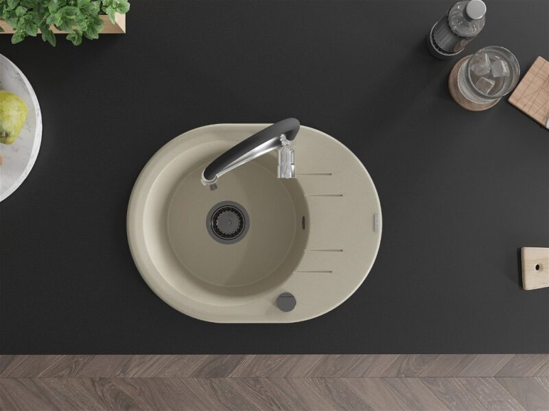 MEXEN/S MEXEN/S – Kevin granitový drez s odkvapkávačom vrátane batérie Aster, béžová 6517-69-73450-07-B