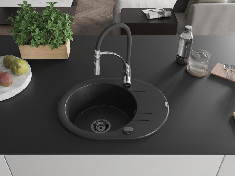 MEXEN/S MEXEN/S – Kevin granitový drez s odkvapkávačom vrátane batérie Aster, čierna 6517-77-73450-07-B