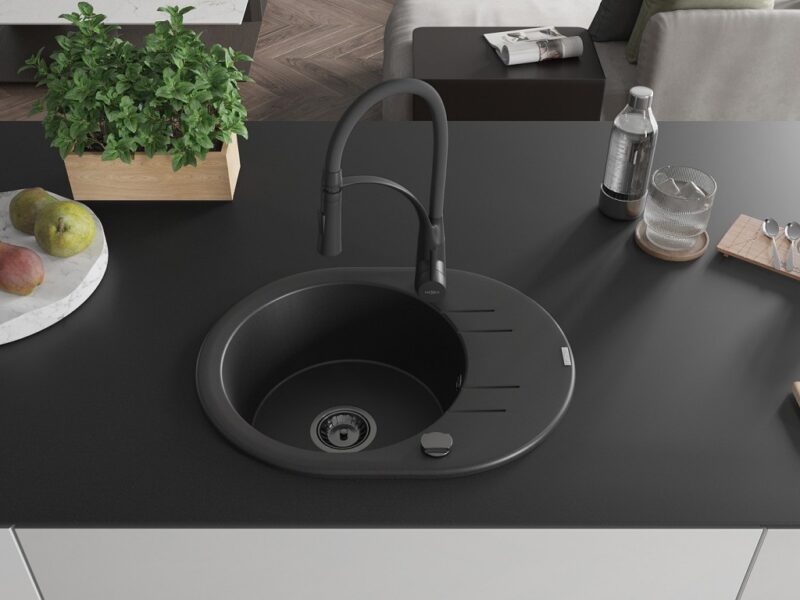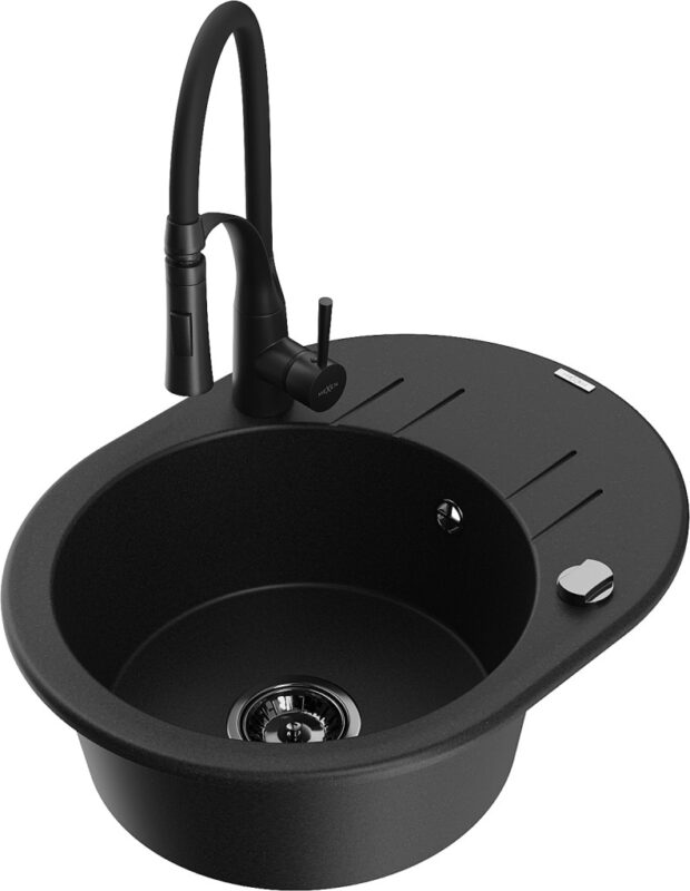 MEXEN/S MEXEN/S – Kevin granitový drez s odkvapkávačom vrátane batérie Aster, čierna 6517-77-73450-70-B