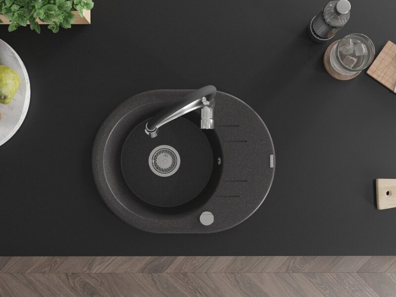 Technické dáta: drez: Rozmer: 586 x 458 x 190 mm Hĺbka komory: 180 mm Šírka komory: 378×374 mm Priemer odtoku: ø90 mm Typ: 1-miska s krátkym odkvapkávačom Typ: Zapustené do pracovnej dosky Farba: Škvrnitá čierna Povrchová úprava sifónu: Chrome Materiál: žula (80% žulové kamenivo, 20% živice) Prepadový otvor: Áno Otvory: (batérie, automatické) 2 Inštalácia: Univerzálna, je možné inštalovať s odkvapkávačom na ľavú alebo pravú stranu Vysoká odolnosť proti poškriabaniu a zmene farby Odolnosť proti tepelným šokom Ľahko čistiteľný povrch Dva dodatočné vyfrézované otvory na samodierovanie ø35 kuchynská batéria: Materiál: mosadz Farba: chróm/čierna Hlava: Keramická Prevzdušňovač: Áno Typ: Jedna páka Výška batérie: 430 mm Rozsah výtoku: 185 mm Batéria má výsuvný výtok(GT) Ean: 5905315048707
