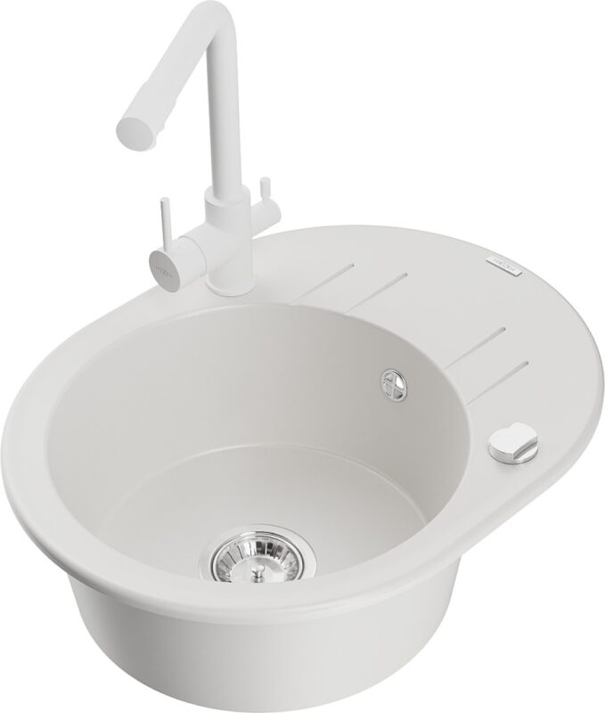 MEXEN/S MEXEN/S – Kevin granitový drez s odkvapkávačom vrátane batérie Duero, biela 6517-20-671600-20