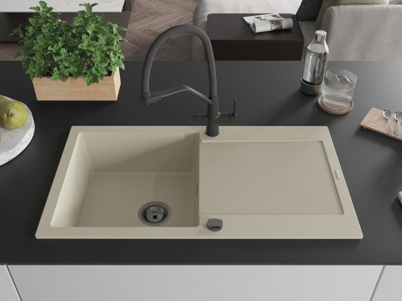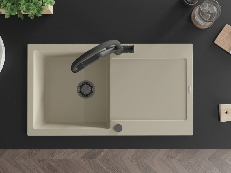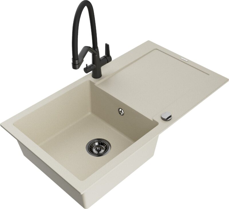 MEXEN/S MEXEN/S – Leo granitový drez 1-miska s odkvapkávačom vrátane batérie Duo, béžová 6501-69-671701-70-B