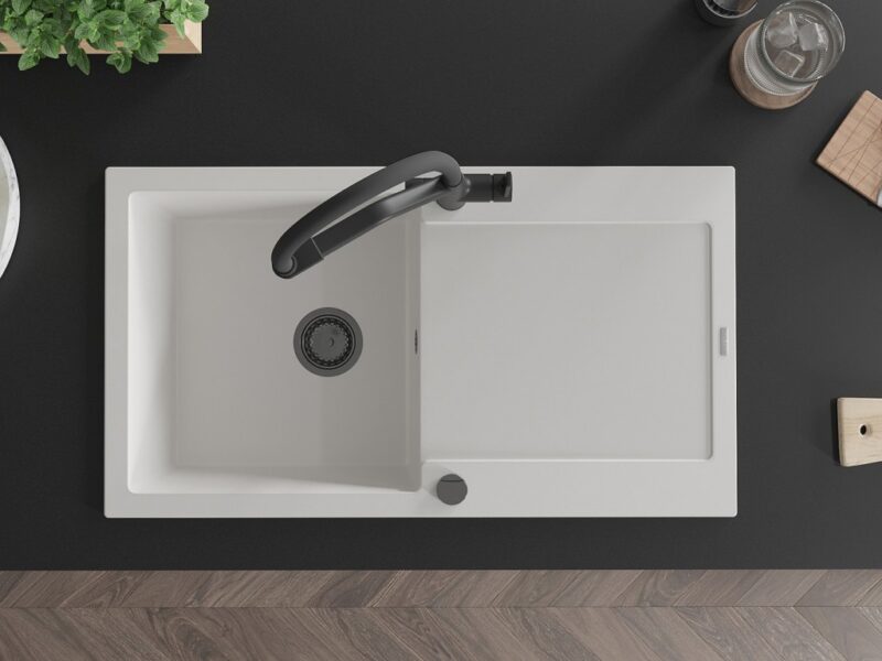 MEXEN/S MEXEN/S – Leo granitový drez 1-miska s odkvapkávačom vrátane batérie Duo, biela 6501-20-671701-70-B