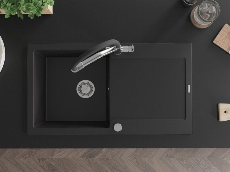 MEXEN/S MEXEN/S – Leo granitový drez 1-miska s odkvapkávačom vrátane batérie Duo, čierna 6501-77-671701-07