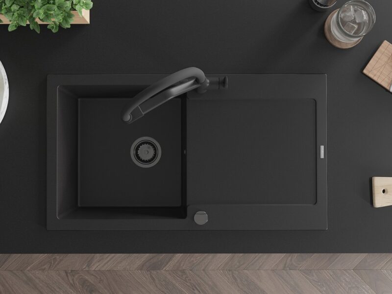 MEXEN/S MEXEN/S – Leo granitový drez 1-miska s odkvapkávačom vrátane batérie Duo, čierna 6501-77-671701-70-B