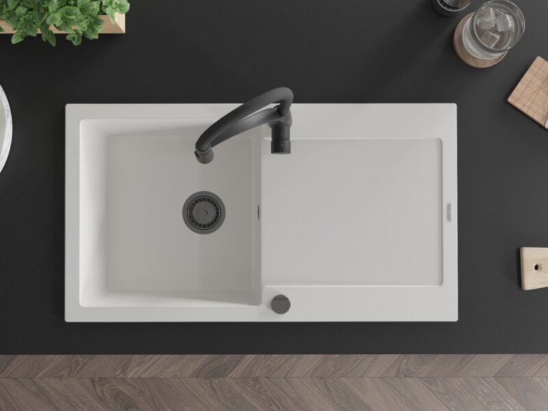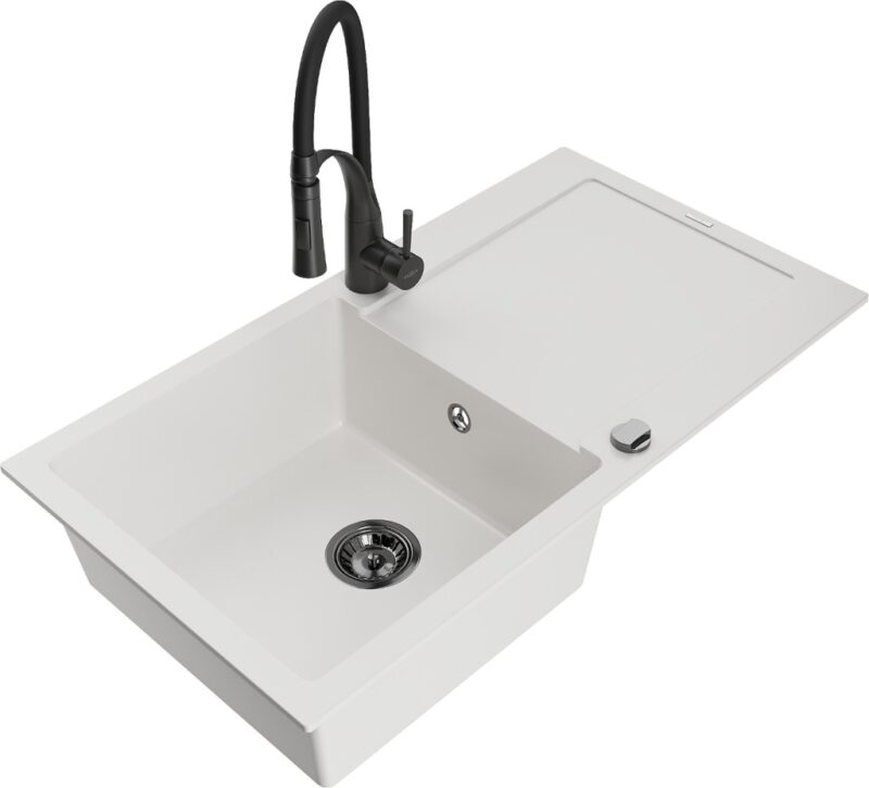 MEXEN/S MEXEN/S – Leo granitový drez 1 s odkvapkávačom vrátane batérie Aster, biela 6501-20-73450-70-B