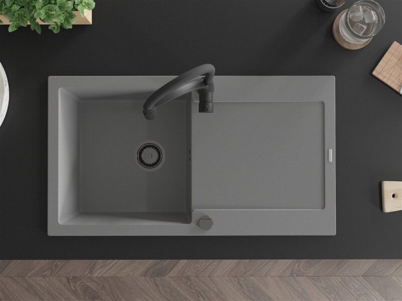 MEXEN/S MEXEN/S – Leo granitový drez 1 s odkvapkávačom vrátane batérie Aster, šedá 6501-71-73450-70-B