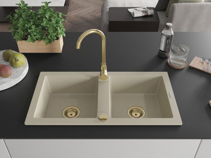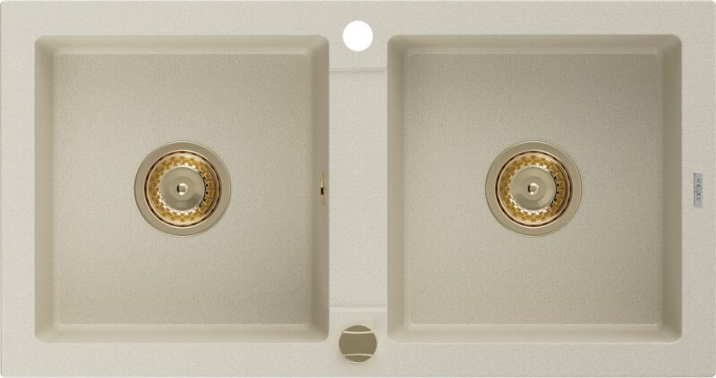 MEXEN/S MEXEN/S – Mario granitový drez 2-bowl 820×436 mm, béžová,+ zlatý sifón 6504822000-69-G
