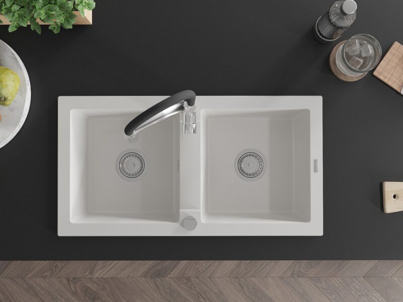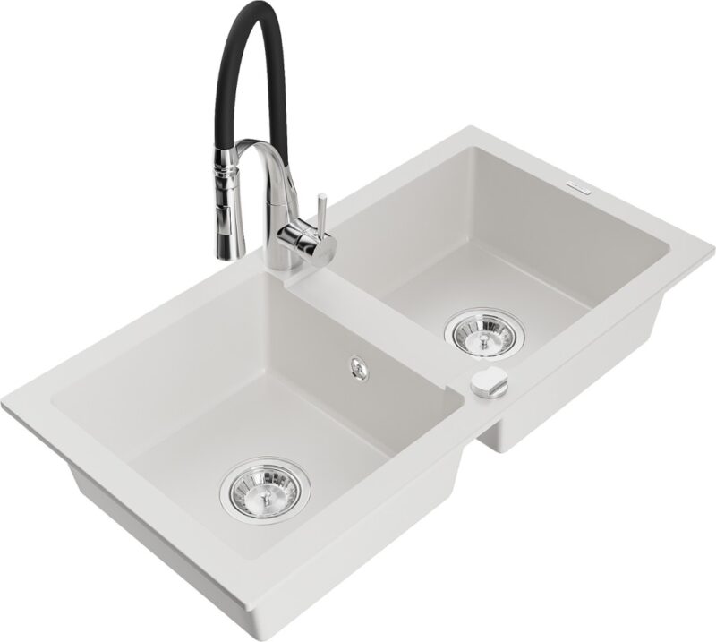 MEXEN/S MEXEN/S – Mario granitový drez 2-bowl vrátane batérie Aster, biela 6504-20-73450-07