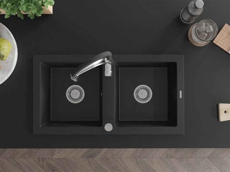 MEXEN/S MEXEN/S – Mario granitový drez 2-bowl vrátane batérie Aster, čierna 6504-77-73450-07