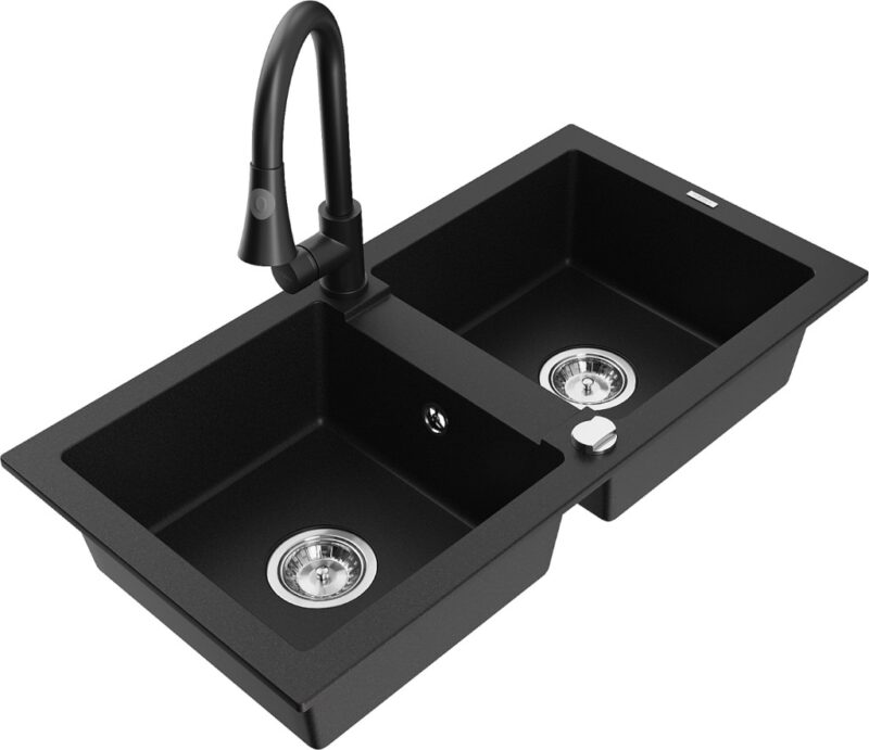 MEXEN/S MEXEN/S – Mario granitový drez 2-bowl vrátane batérie Elia, čierna 6504-77-670101-70