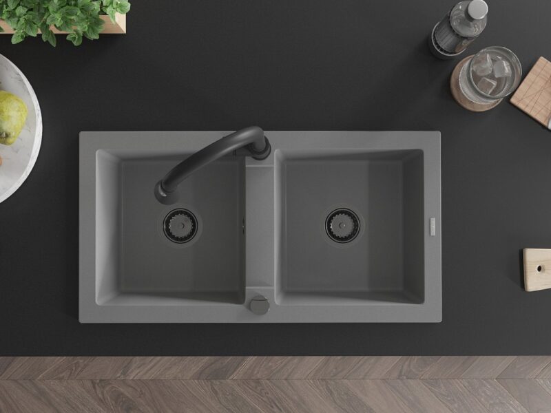 MEXEN/S MEXEN/S – Mario granitový drez 2-bowl vrátane batérie Elia, šedá 6504-71-670101-70-B