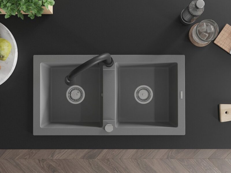 MEXEN/S MEXEN/S – Mario granitový drez 2-bowl vrátane batérie Elia, šedá 6504-71-670101-70
