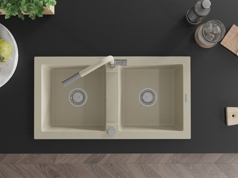 MEXEN/S MEXEN/S – Mario granitový drez 2-bowl vrátane batérie Flora, béžová 6504-69-670401-09