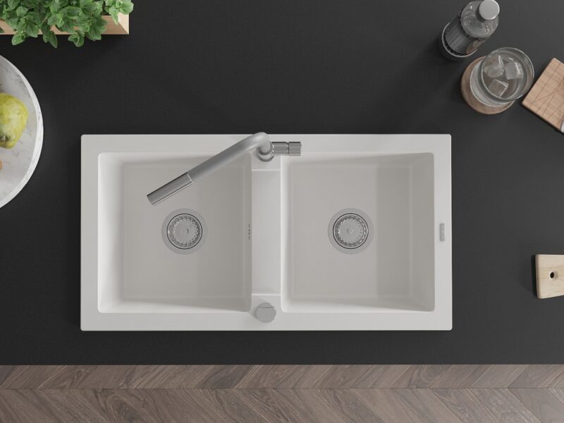 MEXEN/S MEXEN/S – Mario granitový drez 2-bowl vrátane batérie Flora, biela 6504-20-670401-06