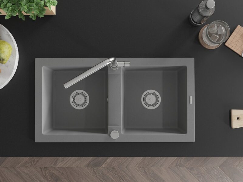 MEXEN/S MEXEN/S – Mario granitový drez 2-bowl vrátane batérie Flora, šedá 6504-71-670401-00